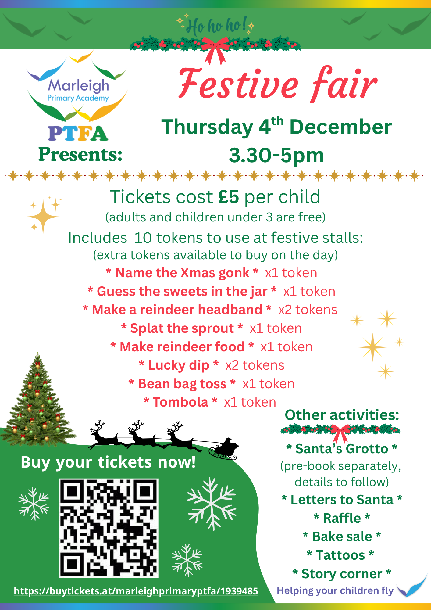 | Thu 4 Dec | PTFA Christmas Fair | All parents/carers and family welcome from 3:50pm – 5pm | Buy tickets online |