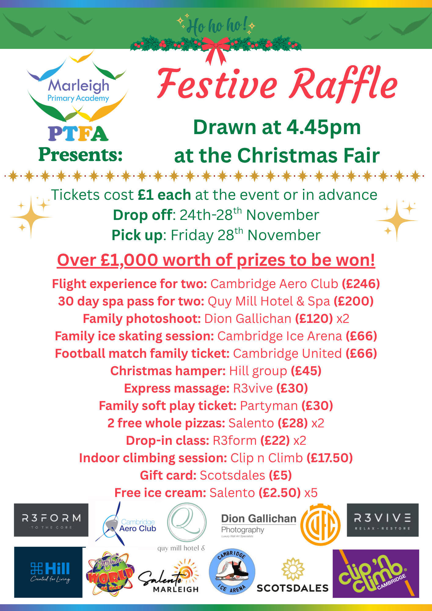 | Fri 28 Nov | Book Advent Calendar Prize Draw | £1.50 per ticket via MCAS. Win 1 of 3 book advent calendars! | Tickets only £1.50 in MCAS |