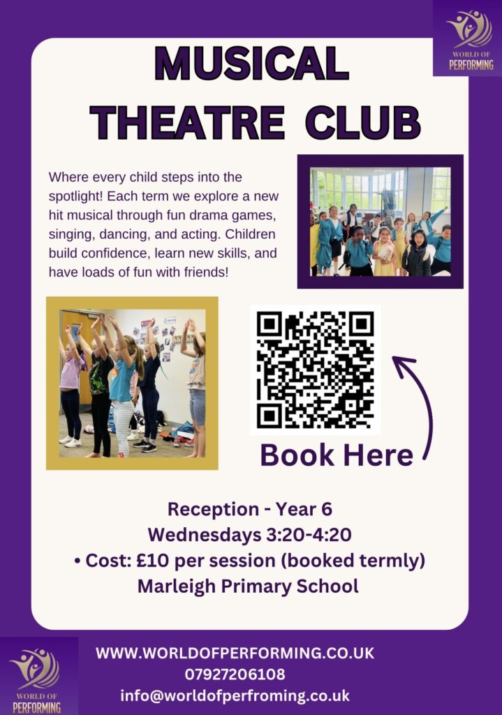 | Wednesday | Musical Theatre | By World of Performing. | 3:20 – 4:20pm | Book online |